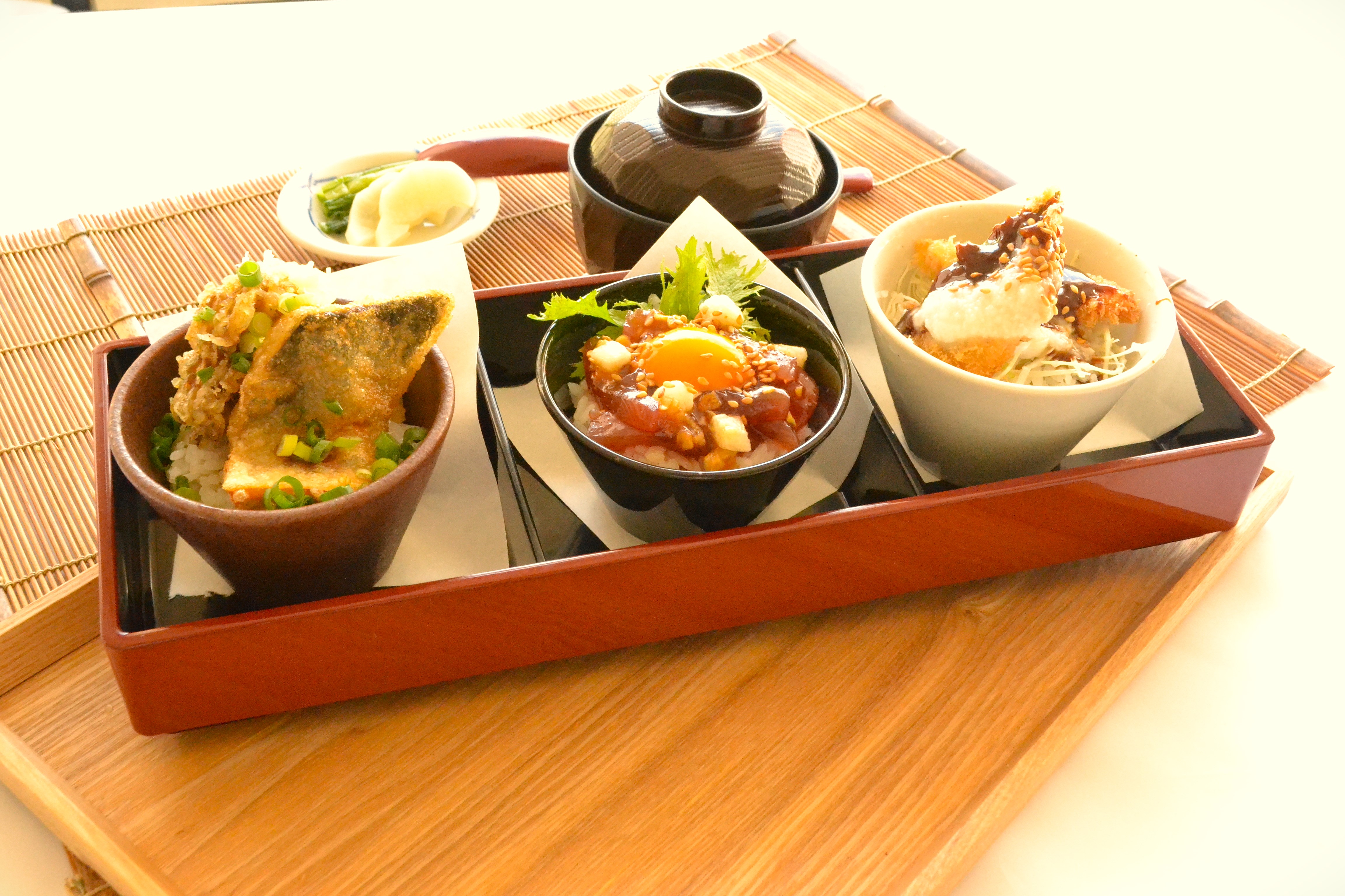小さな秋の味覚丼(さば竜田丼・かつおぐるまぜ丼・鮭みそかつ丼) 1,980円税込