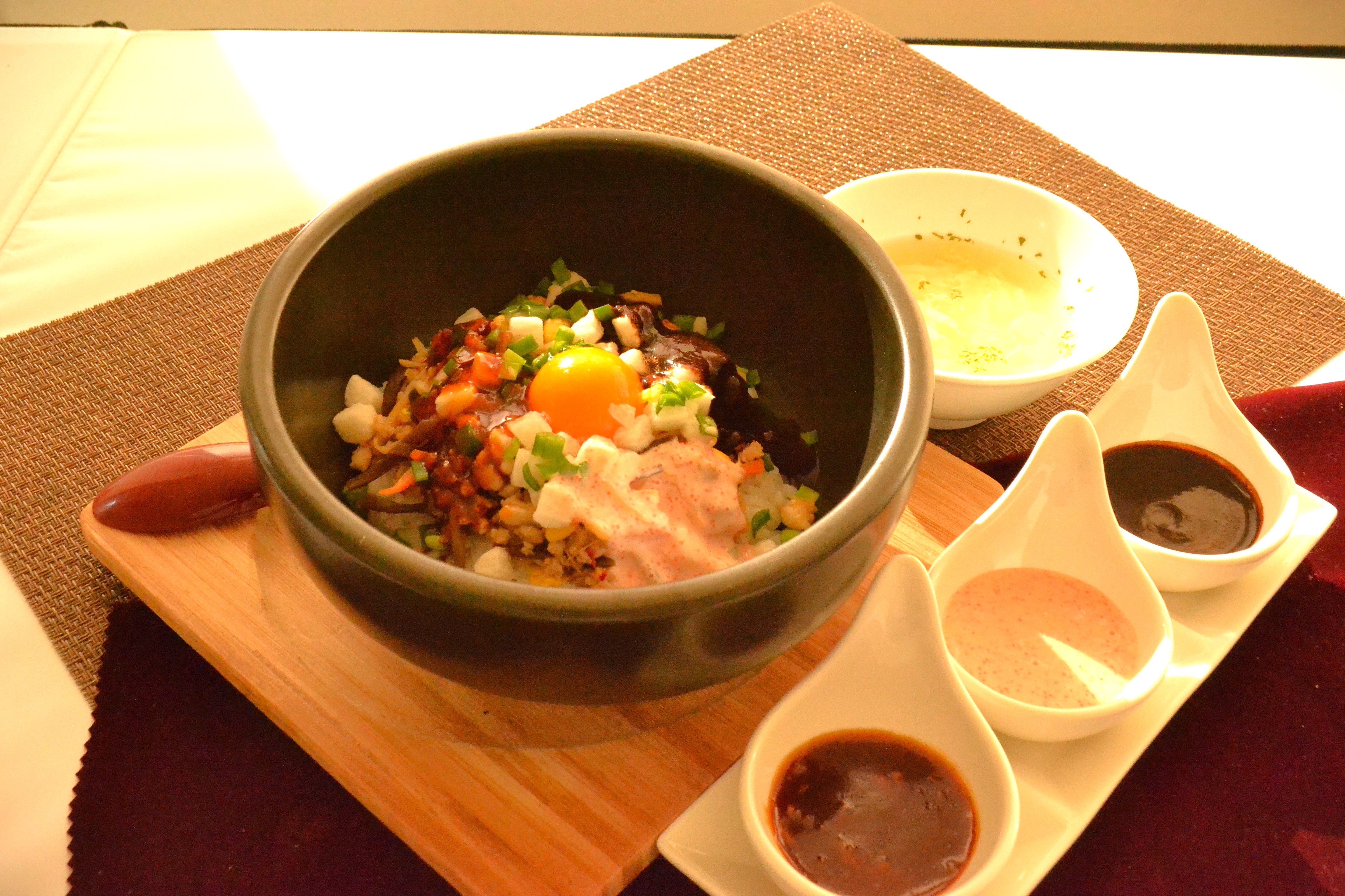 ごま油が香るごはんにシャキシャキの野菜と黄身を混ぜながら食べる熱々鍋ごはんに